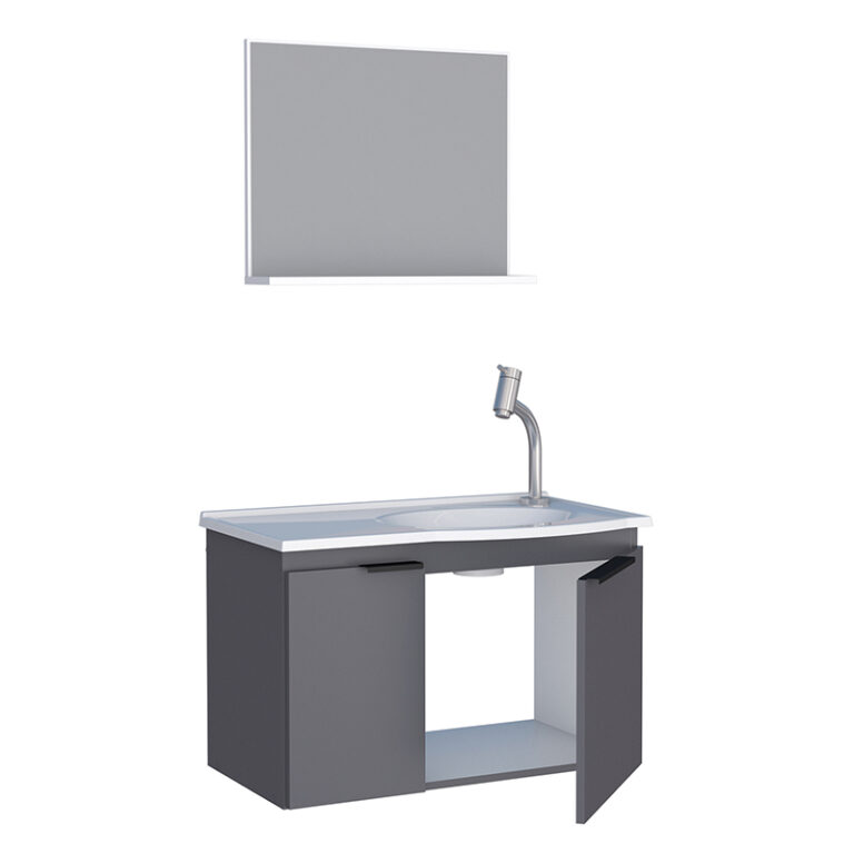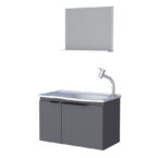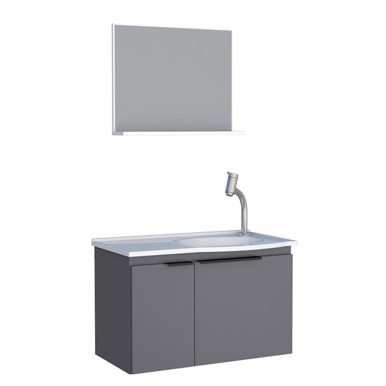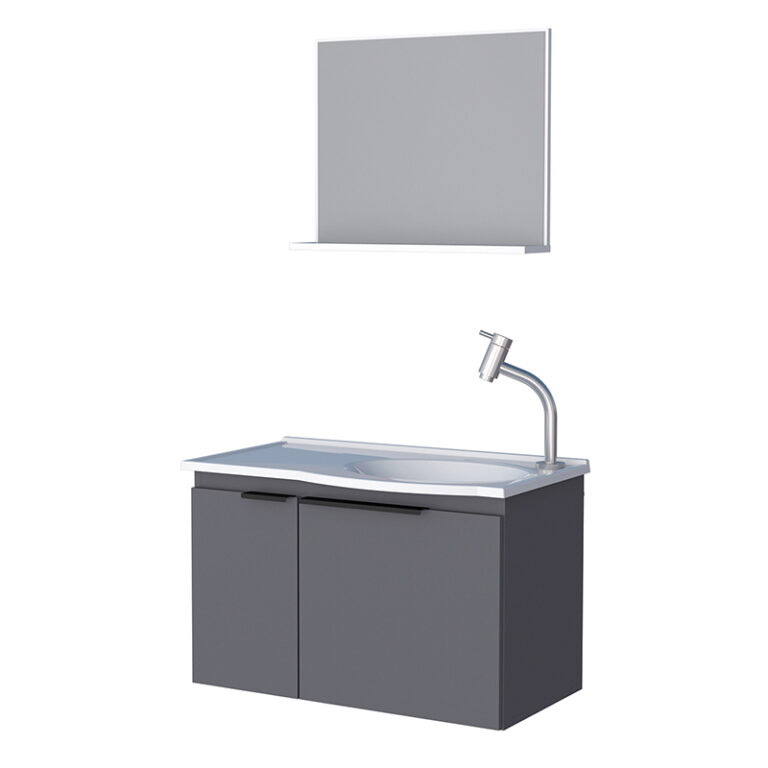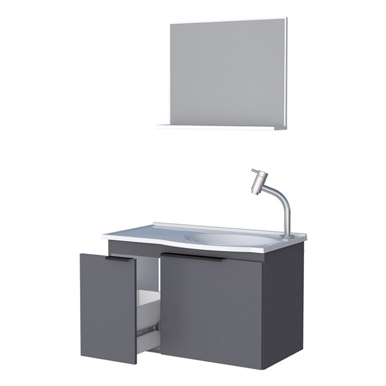 Mueble aereo para baño QUARTZO gris con lavamanos de mármol sintético y espejo con repisa, cajón con correderas telescópicas*NO INCLUYE GRIFERIA