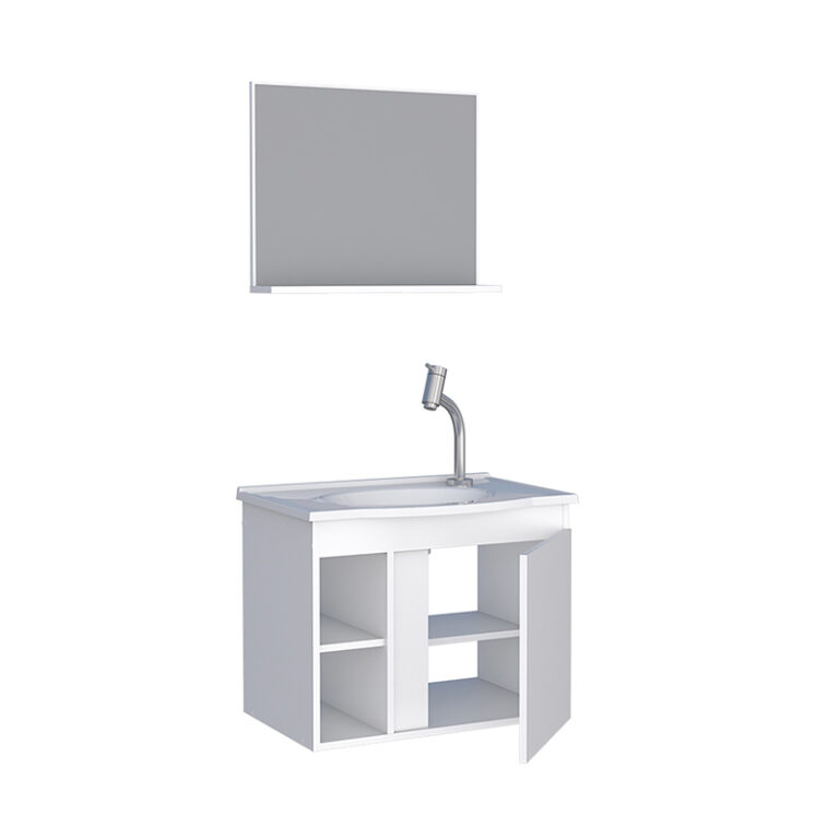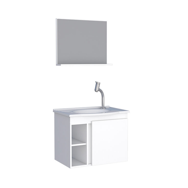 Mueble aereo para baño SAFIRA blanco con lavamanos de mármol sintético y espejo con repisa*NO INCLUYE GRIFERIA