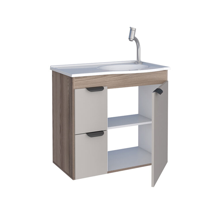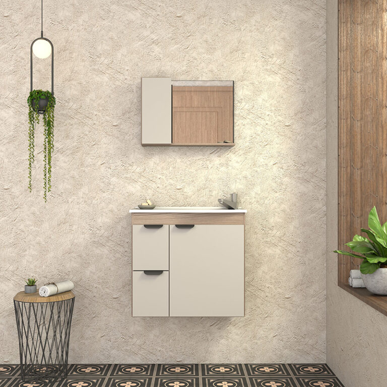 Mueble aereo para baño MARGARIDA nude tamarindo con lavamanos de mármol sintético y cajones con correderas telescópicas*NO INCLUYE GRIFERIA