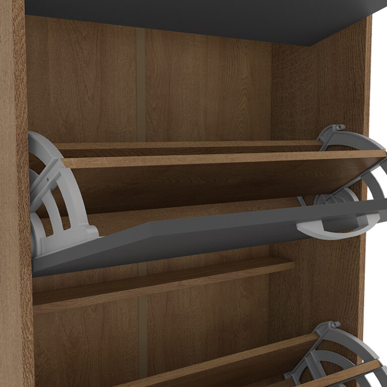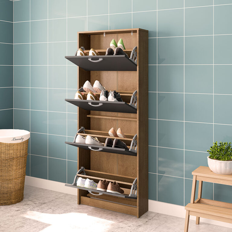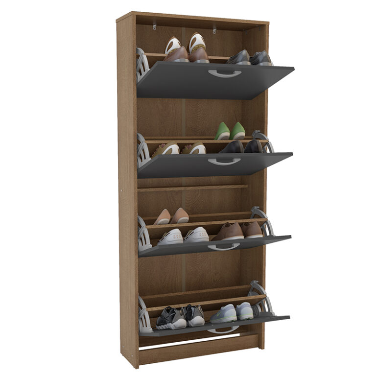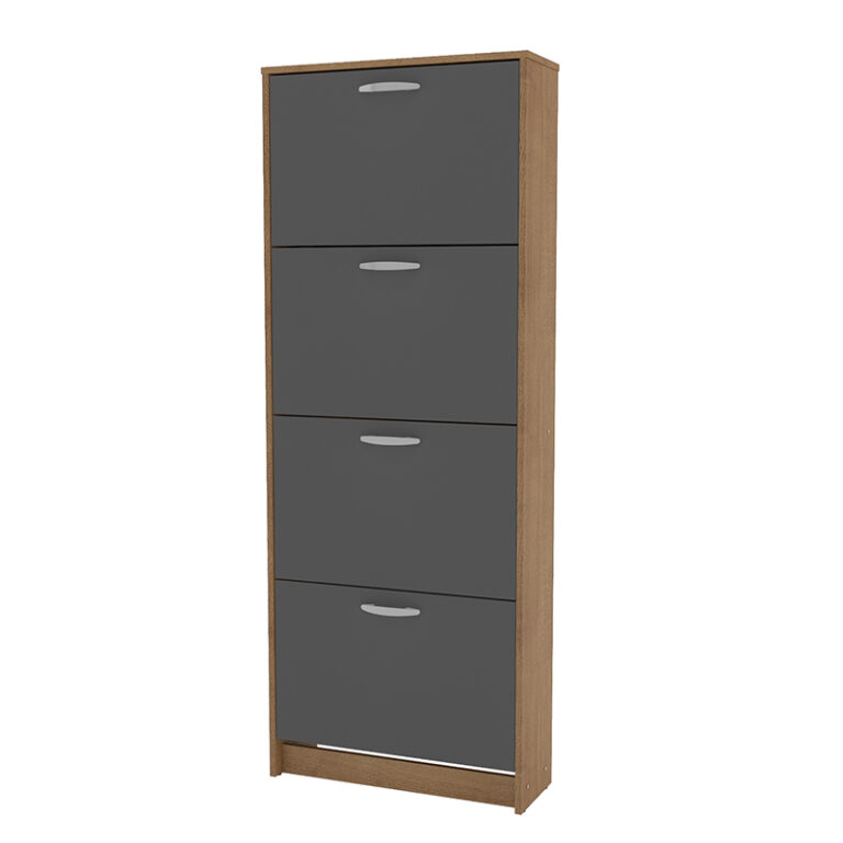 ZAPATERA NICK 4 PUERTAS, CON ESTRUCTURA EN MDP Y CUBIERTA EN PINTURA UV. PENSADA PARA FACILITAR EL ORDEN DEL CALZADO, ENTREGANDO UN ESTILO MINIMALISTA Y EXACTO.