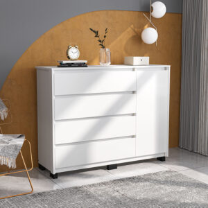 COMODA 4 CAJONES 1 PUERTA COIMBRA BLANCA, ESTRUCTURA EN MDP Y CUBIERTA EN PINTURA UV. ORGANIZATE CON UN DISEÑO INIGUALABLE