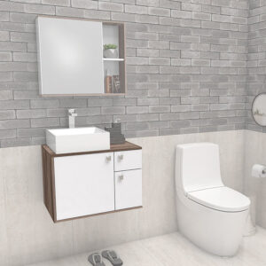 Mueble aereo para baño CAETE blanco tamarindo con lavamanos PRISMA de sobreponer en mármol sintético y puertas con cierre lento*NO INCLUYE GRIFERIA