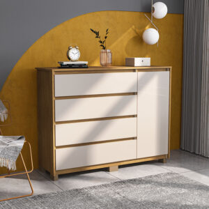 COMODA 4 CAJONES 1 PUERTA COIMBRA, ESTRUCTURA EN MDP Y CUBIERTA EN PINTURA UV. ESPECIAL PARA MANTENER EL ORDEN DE TU ROPA, ENTREGANDO UN ESTILO ÚNICO EN TU ESPACIO.