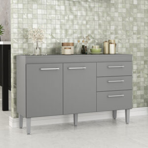 Mostrador fabricado en MDP en color freijó/blanco roto, dispone de 3 puertas y 2 cajones para guardar utensilios, pilas o accesorios de cocina. Es el mueble perfecto para completar la decoración y organización de tu cocina. También puedes combinar este modelo con el armario colgante.