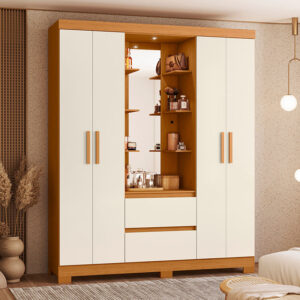Compacto, funcional y perfecto para mantener todo organizado en tu día a día! Con 6 puertas y 2 cajones, ofrece mucho espacio interior, con 7 estantes ideales para guardar ropa, zapatos y otras pertenencias. Además, cuenta con un espacio para perchas bien ubicado, lo que facilita el acceso a tus artículos favoritos. El montaje se puede realizar en dos posiciones, adaptándose a tus necesidades. Los cajones tienen rieles metálicos, lo que garantiza su durabilidad, mientras que las manijas ofrecen un agarre cómodo. Las patas elevadas protegen contra la humedad y los colores modernos están diseñados para mejorar el ambiente y brindar una excelente experiencia en su dormitorio.